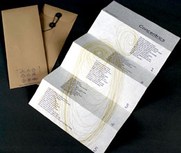 4 x 9.5" folded, 9 x 18" extended. Folded broadside. Text and image letterpress printed on Japanese paper. Contained in an envelope with twine closure. Title printed on envelope.