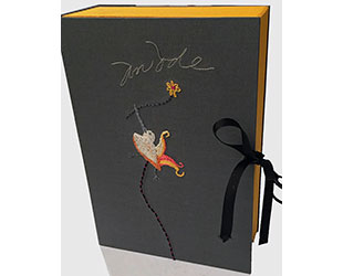 Image pages feature photographed details from a group of artists' books created by Judy Anderson and featuring poems by Ginny Hoyle. The first edition volumes were bound as wall-mounted sculptures. This second edition is perfect bound with wood covers.