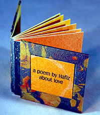 A miniature book from Wendy Fernstrum using the poetry of Jalaluddin Rumi (1207-1273), master of the Sufi tradition, a mystical branch of Islam.