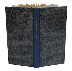 Standard: Enumerations book only. 3.5 x 7.5"; 24 punch-card leaves and 14 graph-paper leaves. Digitally printed onto unused computer punch cards. Trigonometry screenprints printed on vintage graph paper. Design, screenprinting, pastepapers, and binding by Stephanie Gibbs. Bound in pastepaper over boards with cloth spine. Title in silver on spine. Numbered. Initialed by the artist.