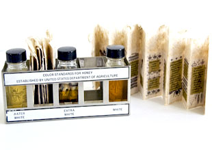 Box containing 5 glass test tubes. Box: 5.75 x 7 x1.5"; cloth covered; button and tie closure; metal corner guards at bottom; metal title label. Test tubes: 1" diameter, 6.25" high with cork stopper. Title tags: 1.5 x 1" with book title inserted. Numbered on cover label.