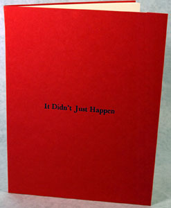 A letterpress printed set of 5 magic wallets provoked by the events of 9/11 which address the cacophony of news reports, emotions analysis and opinions (expert and otherwise) that follow in the wake of any major news event. The righteous indignation and reciprocal intolerance, whitewashed by ideals from religion to political correctness, raise the question of personal belief. Using the magic wallet format, the books panels flip back and forth forming two opposing statements that reflect the slipperiness of forging a personal philosophy.