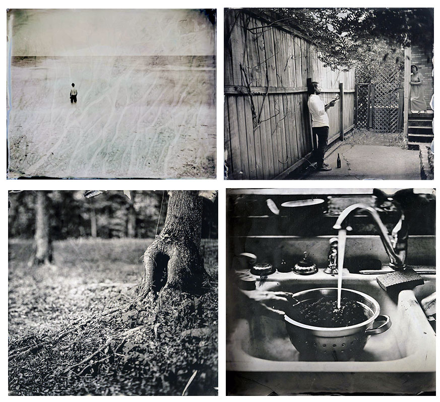 The images were created using wet plat collodion tintype photographs and are of scenes in Georgia, Louisiana, and Tennessee.