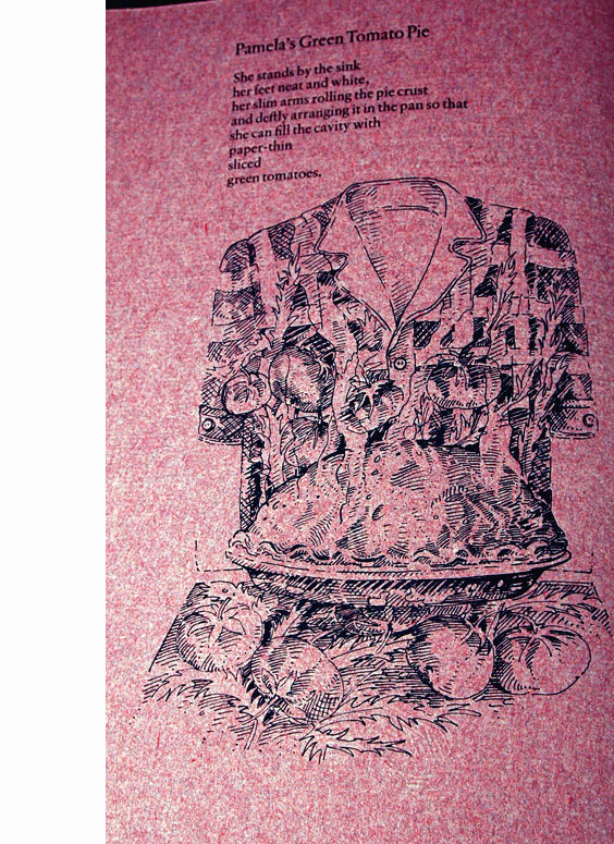 These are poems about preparing foods as well as the cooking, the eating, and the drinking. Papers were made to correspond to the color of the food in the poems.
