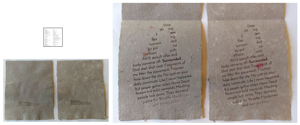 Original concrete poetry printed on both sides while spotlighting the situations of these individuals.
