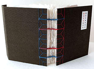4.5 x 5.8"; 17 handmade paper leaves; 16 OHP film leaves. Letterpress printed on handmade paper. Laser printed on OHP film. Cloth covered boards. Exposed binding. Paper title label on front board. Signed and numbered by the artist.