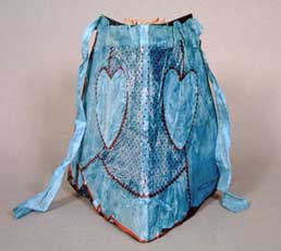| Miriam Schaer: "My work is often about transformation. Using objects created for other ends in my art, so that their reinvention becomes, as it were, subtext to the broader themes my works address. For example, I often use garments - especially bustiers, bras, girdles, kitchen aprons, children's clothing and gloves - as both means and vehicles of containment. Inside their stiffened, shaped, embellished husks - transformed by resin, glue, instinct and paint - I embed unique books and objects reflecting each works gloss on personal, feminine, societal or spiritual issues." |