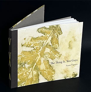 | INLIQUID art +Design: "Susan Viguers’ artists’ books (and prints) always entail text. She is interested in the relationship (sometimes fusion) of words and images, the way image-making processes mold images, the pacing of narrative, and the way structure realizes that movement. The goal of her art making is the evocation of what can’t be expressed—beyond word/image/structure. She began her career as a scholar/writer and teacher of literature and writing. Her move into art came much later; she served as Director of the MFA Book Art/Printmaking Program at the University of the Arts for nine years." |