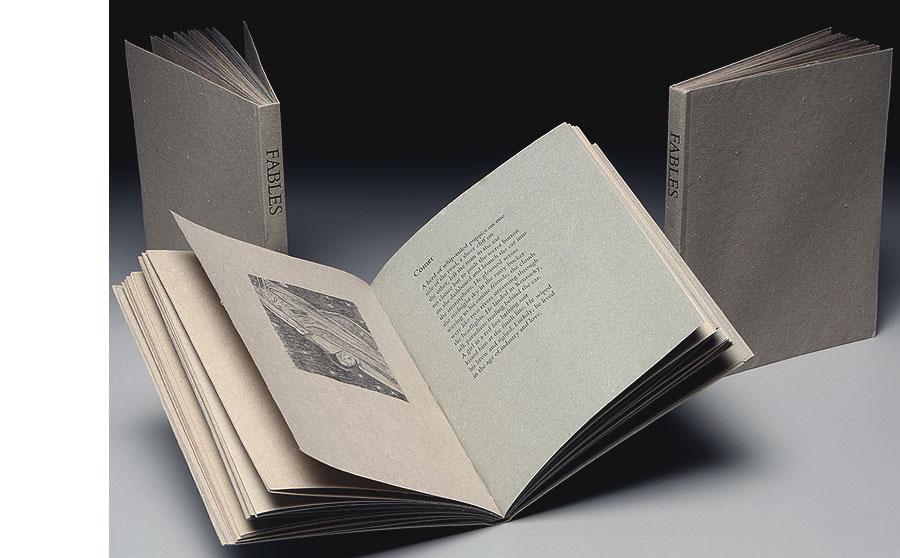 3.25 x .25 x 4.5"; 16 pages. Printed on Curtis Rag paper with photopolymer plate images. Printed with Caslon types. Bound in paper-covered boards. Numbered.
