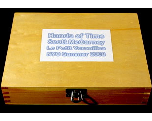 Scott McCarney: "Hands of Time documents a version of a piece that has been installed/performed privately in my garden in Rochester NY for the past eight years. It started as a tribute to my father, who died at his home in Virginia from lung cancer in 2001. When told he had three weeks to six months to live, he chose to move from hospital to hospice care at home. That was Friday. We had a nice weekend together before he passed away the following Tuesday, much to the surprise of his doctor. Being with him those last few days, I understood his will to die was as strong as his will to live had been.